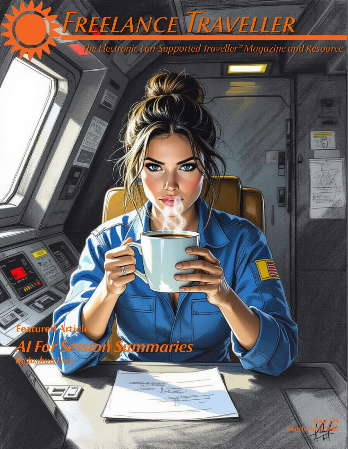 Freelance Traveller is available as a free PDF magazine, published approximately monthly January 2010 through December 2015, bimonthly beginning January 2016, and with an introductory issue November 2009. You can download the current issue in either ANSI A (US Letter) or ISO A4 format. If your computer is equipped with PDF browser plug-ins, the magazine may open up in your browser; you can avoid this by clicking on the link with the secondary mouse button (Mac users with one-button mice use Control-click) and selecting “Save Link As...” or “Save Target As...”.