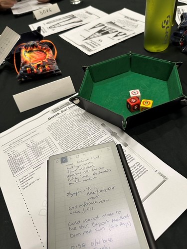 I really enjoyed catching up with folks, and it was great to spend a weekend playing my forever game with them. It was also lovely to meet people I knew from forums and Facebook groups but have never met face-to-face before (waves at ADnD Steve). A fun weekend in the Far Future.